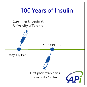 这个夏天标志着自1921年5月17日,弗里德里克·班廷(Frederick Banting)在多伦多大学1开始胰岛素试验以来的100年。从以上时间轴发现,自古埃及首次记载糖尿病以来,这种疾病的鉴别诊断和疗法开发已有3500多年的历史了。在研发出第一剂胰岛素之前,1型糖尿病对患者而言无异于一种死刑。过去,1型糖尿病被称为胰岛素依赖型,或青少年糖尿病——因其发病主要见于儿童和年轻人。这是一种自身免疫性疾病,人体的免疫系统攻击自身的胰岛素分泌细胞,从而导致血糖升高或引发高血糖症。如果不加以治疗,将加重患者病情,甚至危及生命。